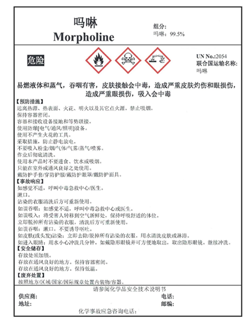 Including chemical identification, pictograms, signal words, hazard statements, prevention statements, emergency consultation hotline, supplier identification, information reference prompts, etc.