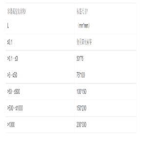 For containers or packaging of different capacities, the minimum label size is shown in Table 1